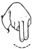 На ћирилици написано РАДОВАН БЕКОЊА састоји се из 13 слова [?]. Исписано ћириличном једноручном азбуком за глувонеме: